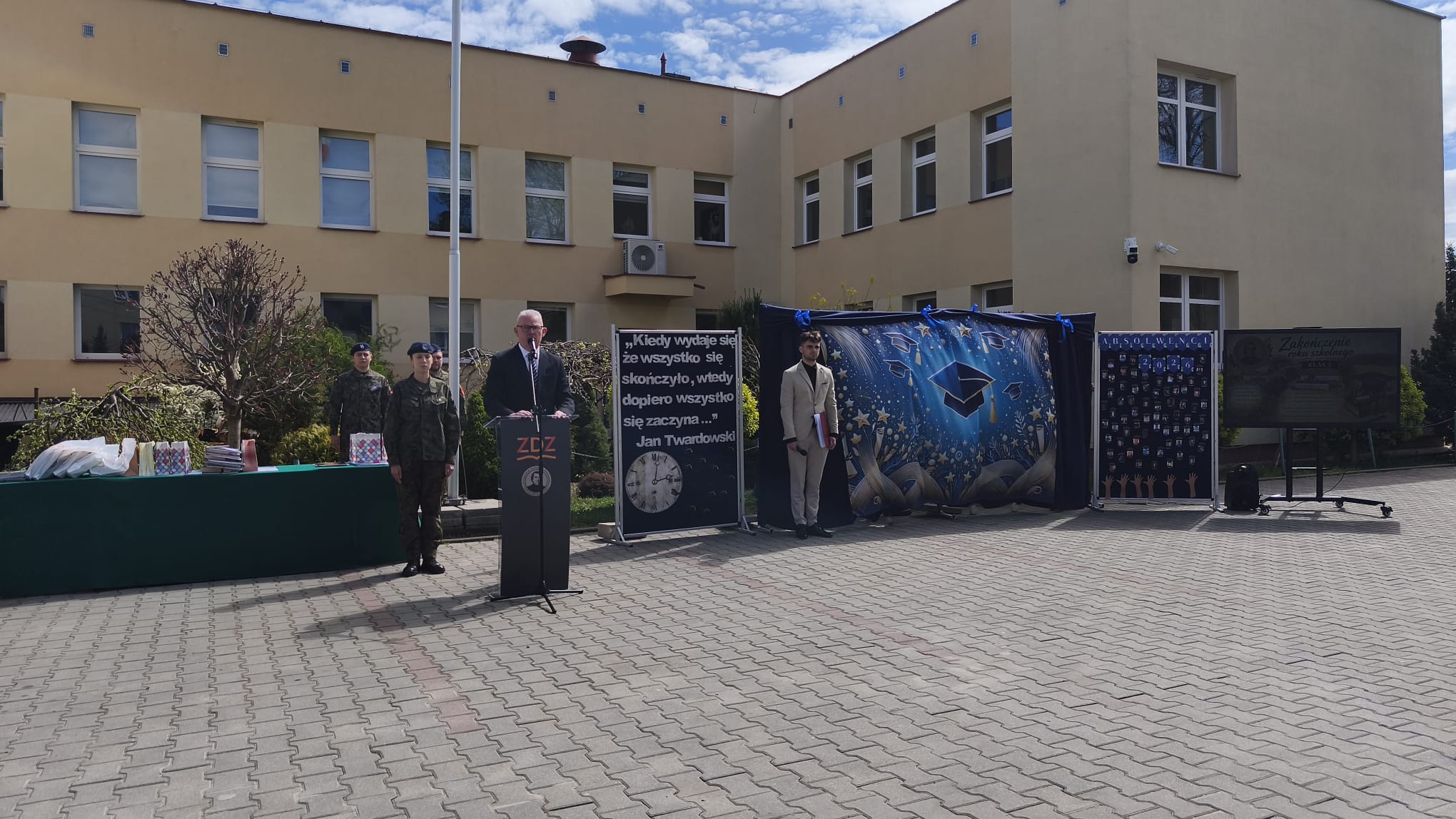 24.04.2026 r. odbyła się uroczysta akademia z okazji zakończenia roku szkolnego klas maturalnych Technikum im. Stanisława Konarskiego w Nowym Mieście nad Pilica Zakładu Doskonalenia Zawodowego w Kielcach. Podczas apelu Pan Dyrektor wraz z wychowawcami wręczył świadectwa z wyróżnieniem. Uczniom zostały również wręczone podziękowania za zaangażowanie, godną postawę oraz udział w życiu szkoły.