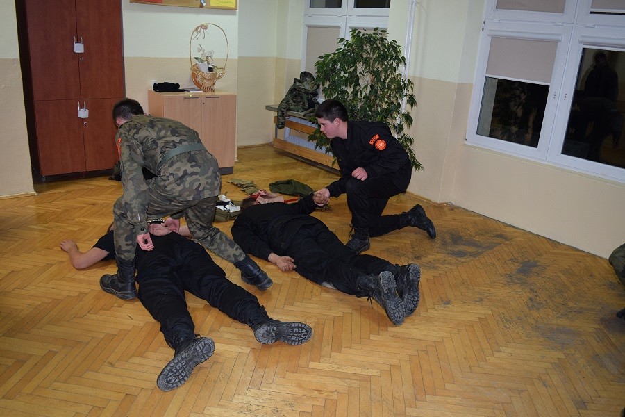 Zajęcia poprowadzili doświadczeni żołnierze i instruktorzy survivalu: p. Marcin Kopała, p. Piotr Janiec, p. Mariusz Karpiński oraz p. Robert Osys. Koordynatorem zajęć był ppłk rez. Robert Misztal, opiekun klas mundurowych Zakładu Doskonalenia Zawodowego w Kielcach. Zajęcia rozpoczęły się obiadem, potem był wymarsz do lasu, a następnie gra terenowa, polegająca na oznaczaniu trasy, wykonywaniu specjalnych zadań, aby uzyskać dane do wyznaczenia azymutu, by jak najszybciej dotrzeć do celu i nie zgubić się, bo teren był rozległy. Uczniowie wykorzystywali umiejętności posługiwania się radiostacją. Wcześniejsze szkolenia dla klas wojskowych przyniosły oczekiwany efekt i wszystkie drużyny radziły sobie z odczytywaniem mapy i sprawnie posługiwały się kompasem.